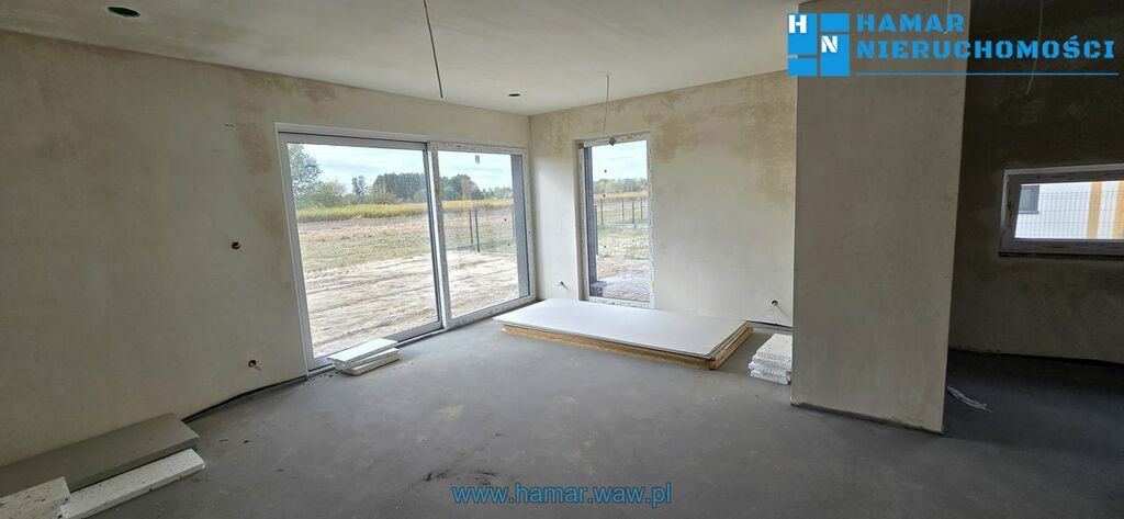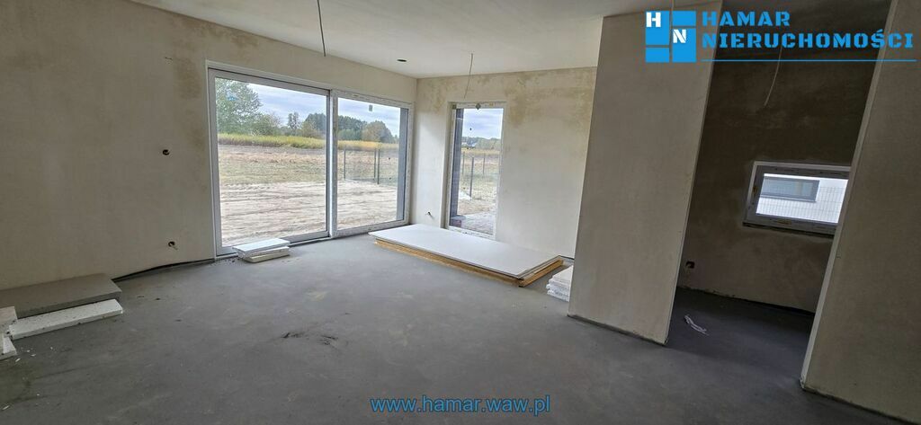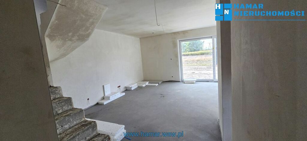 Nowoczesny dom w zabudowie bliźniaczej usytuowany kameralnym ispokojnym osiedlu w Falentach Nowych, gmina Raszyn. Powierzchnia